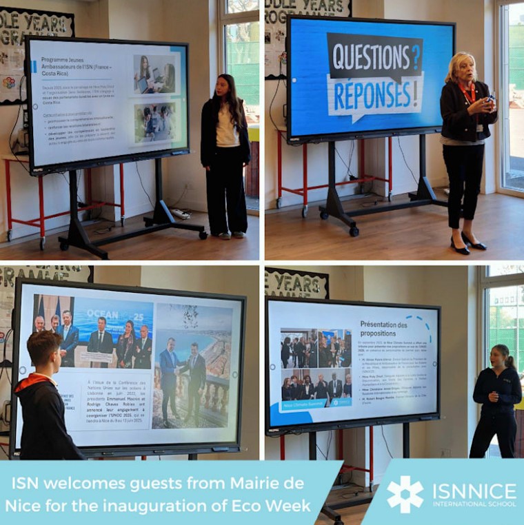 Le 17 mars, l’International School of Nice (ISN) est devenue un centre d’action environnementale en accueillant une délégation distinguée de la Mairie de Nice à l’occasion de l’Eco Week. Avec pour thème cette année « La conservation de l’eau et des océans », l’événement a suscité des discussions cruciales sur la durabilité marine en amont de la troisième Conférence des Nations Unies sur les Océans (UNOC3), qui se tiendra à Nice en 2025. Cette conférence vise à encourager l’action mondiale et à unir les acteurs de la conservation et de la gestion durable des ressources océaniques, en accord avec l’Objectif de Développement Durable 14 : Vie aquatique.