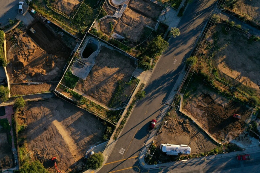 An aerial view of Altadena taken on December 29, 2025, shows the extent of damage and signs of new construction a year after the wildfires © AFP