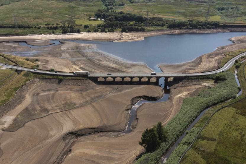 A reservoir in West Yorkshire which is drying up due to lack of rainfall. (zerowaterloss)