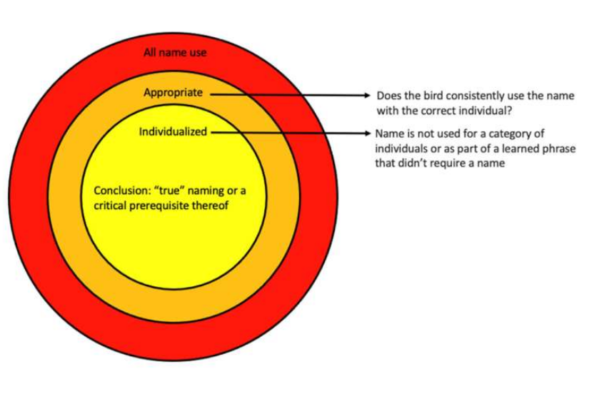 Nearly half of the survey takers included examples of parrots using names. Of those 413 clips, 88 seemed to be birds using names as labels for people and animals. The research team also found strong evidence that some birds applied names not only to a particular category, such as "people," but to a single individual.