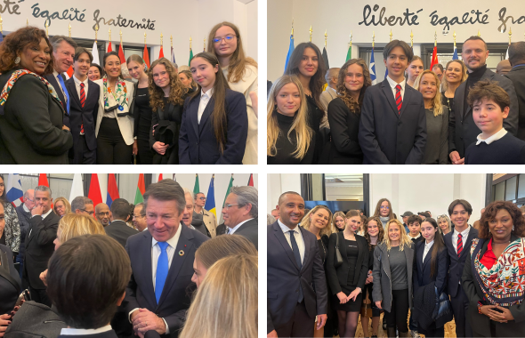 Anna (Grade 10) shared how meaningful the experience was for her: “While participating in the signing of the "High Seas Treaty" in the Mairie de Nice, I felt very inspired and motivated. First, because I care about the development of ways to save our oceans and seas but also because I am very interested in such social events where significant figures as well as role models present their speeches and speak so freely and passionately about their topics. I am very interested in public speaking and speeches, especially when they are motivating, captivating and come from the person's heart. When Estrosi was speaking, I was most sparked, as his words really impressed me. This Treaty touched me and motivated me to act better towards the environment, but also moved me in a personal way. I am very grateful that I got invited to participate in such an event!”