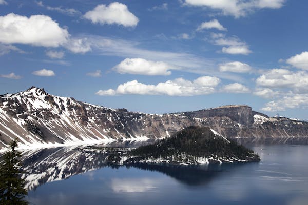 Clouds appear over Crater Lake, Ore. Cleaner air benefits human health while also revealing the full force of greenhouse-gas warming. (AP Photo/Jenny Kane)