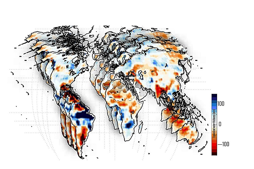 For periods when GRACE and GRACE-FO data were not available, including an 11-month gap between missions in 2017–2018, the researchers used probabilistic models based on spatial patterns to reconstruct total water storage extremes.